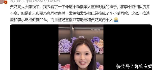 有细心的网友发现,这个助播不是新招的,而是之前就在了,并且之前的样子是和李小璐不像的,但是这一次出现在贾乃亮的直播间却变了,发型和发色都换成了李小璐的同款,相似度和李小璐高达90%。
