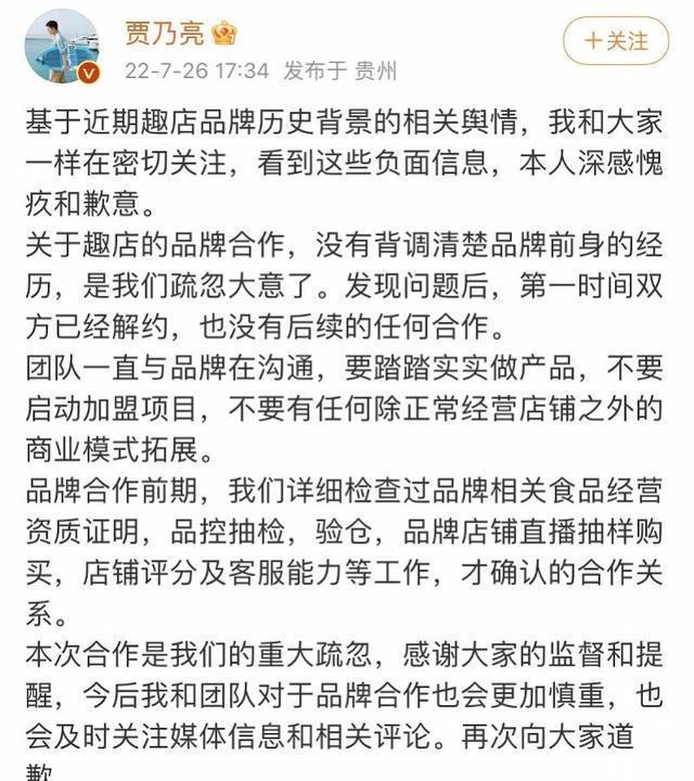 后来被网友指责后,迫于压力才出来道歉,说自己没有调查清楚品牌的前身,疏忽大意了,然后宣布和对方解约,但是这种“事后诸葛亮”的态度并没有得到多少谅解,直播合作的前提不都是做背调吗,只要会上网就不可能不知道,明明就是为了钱故意为之。